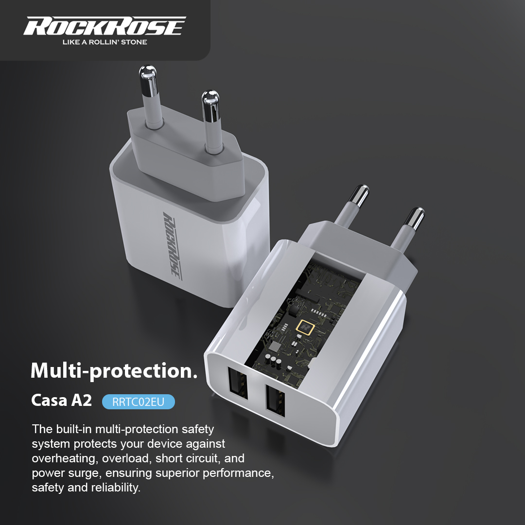 Casa A2 power adapter offers two power output ports with 2.4A max fast charging, 2.4A fast charging and high data transfer speed.