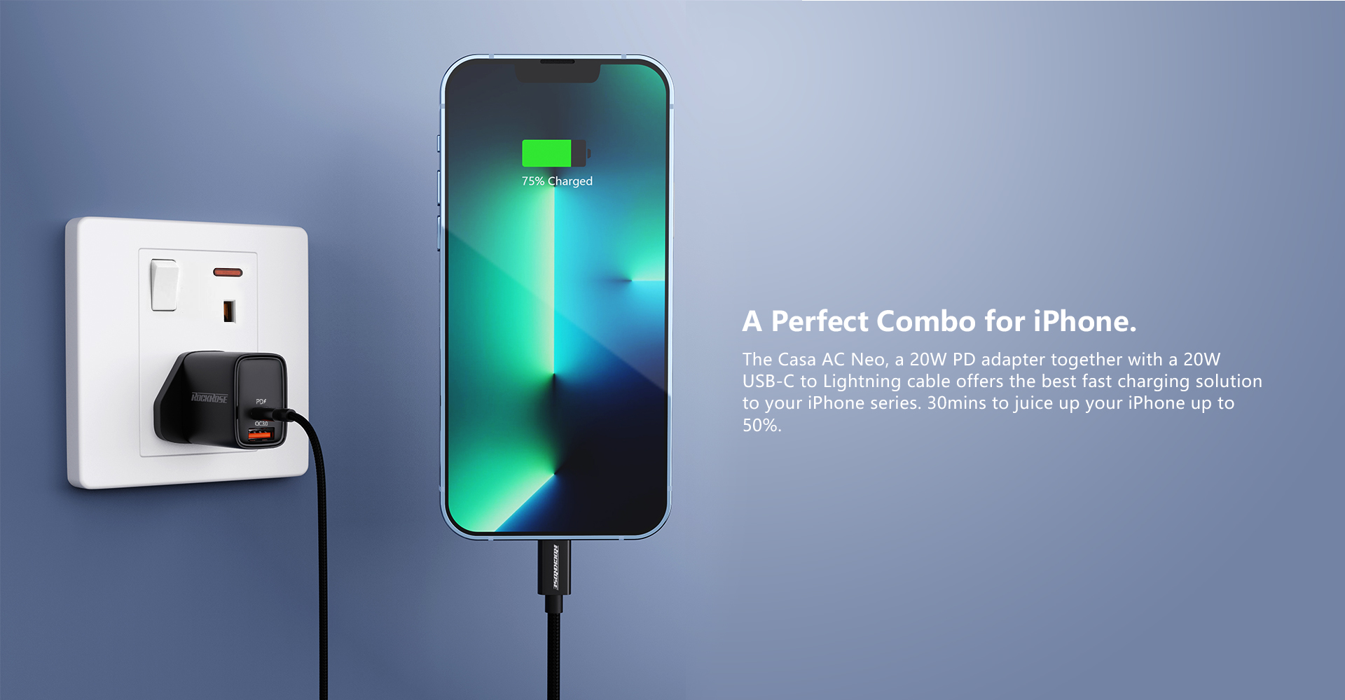 20W PD & QC 3.0 Dual Port Travel Charger with 1M USB-C to Lightning Cable