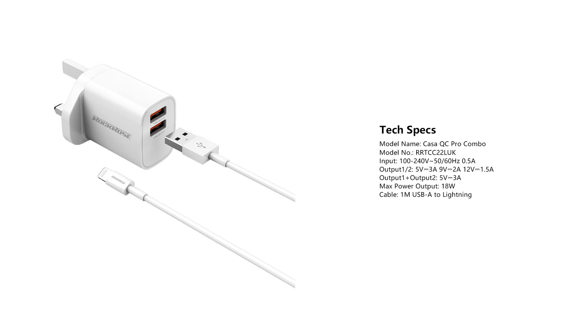 18W Dual Port QC 3.0 Quick Charge Power Adapter with UK Plug + 1M 2.4A Lightning Quick Charge & Sync Cable