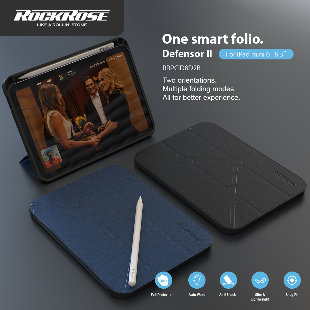 Defensor II tri-fold origami smart folio for iPad mini 6, features versatile folding, flexible TPU case and PU leather cover with microfiber lining, providing full coverage protection.